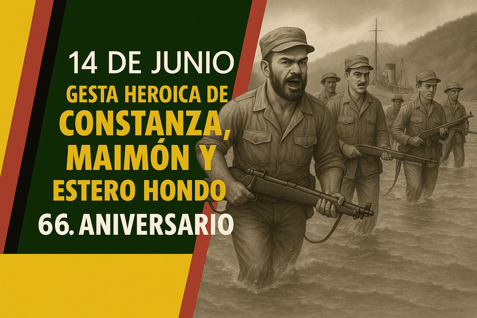 El nombre de Movimiento Revolucionario 14 de Junio-14J nace de la inspiración de la Gesta Gloriosa de Constanza, Maimón y Estero Hondo del 14 y 20 de junio de 1959, cuyos integrantes son llamados “La Raza Inmortal”. Esta fue una expedición militar organizada por el nuevo gobierno cubano dirigido por Fidel Castro, y que estaba al mando del comandante cubano Delio Gómez Ochoa y el dominicano Enrique Jiménez de Moya. En la jefatura también estaba José Horacio Rodríguez (hijo del patriota dominicano Juan «Juancito» Rodríguez) que murió en la acción. La tropa era de 225 combatientes (148 dominicanos, 22 cubanos, 13 venezolanos, y otros) de diversas ideologías, que apoyaron al Movimiento de Liberación Dominicana con el interés de derrocar la dictadura de Rafael Leónidas Trujillo. La expedición constó de 3 grupos: 56 hombres que vinieron en avión a Constanza el 14 de junio, y el 20 de junio desembarcó un grupo de 121 hombres en Maimón y otro grupo de 48 expedicionarios en Estero Hondo. Esa acción armada no tuvo éxito en el orden militar, casi todos los combatientes fueron aniquilados y solo unos pocos fueron encarcelados y torturados (ej. Delio Gómez), y fueron liberados después de la muerte del dictador Trujillo en 1961. Esa expedición armada sembró la semilla de libertad e inspiró a los creadores del Movimiento Revolucionario 14 de Junio para colocarle ese nombre en honor de los héroes y mártires de esa gesta.