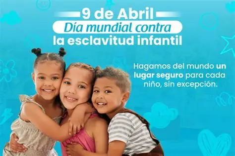Día Mundial contra la Esclavitud Infantil . La esclavitud es un delito grave, la esclavitud infantil es un crimen atroz. La niñez debe ser vivida con la garantía de todos sus derechos, pero en numerosos países no sucede. La vulnerabilidad a la cual se enfrentan los más desposeídos y la falta de acciones para cambiar esta realidad, alimentan a que por sobrevivir niños, niñas y niñes se vean atrapados por redes de criminales que los someten a trabajos forzados, trata de todo tipo y a esclavitud. El 16 de abril se celebra el Día Mundial contra la Esclavitud infantil