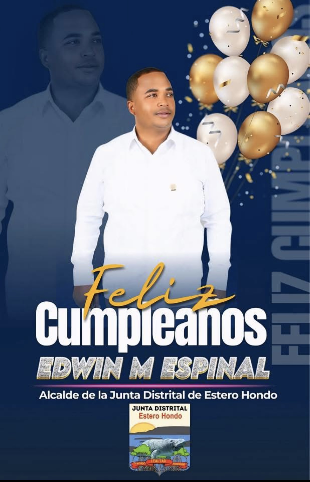 En nombre de la Junta Distrital de Estero Hondo, expresamos nuestras más sinceras felicitaciones a nuestro alcalde Edwin Espinal, deseándole un día lleno de alegría, salud y prosperidad.