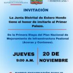 19 noviembre, 2025La Junta Distrital de Estero Hondo invita al Primer Palazo de la Primera Etapa del Plan Nacional de Mejoramiento de...