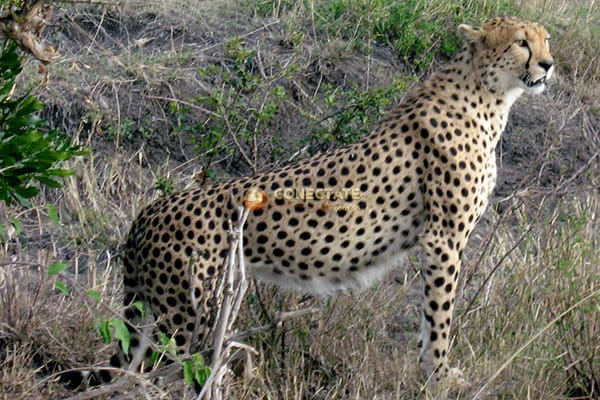 En comparación con otros grandes felinos, el guepardo posee una anatomía especializada para la carrera. Tiene una cabeza pequeña, un cuerpo liviano, patas largas y delgadas y una cola larga que le proporciona equilibrio en los giros a alta velocidad.