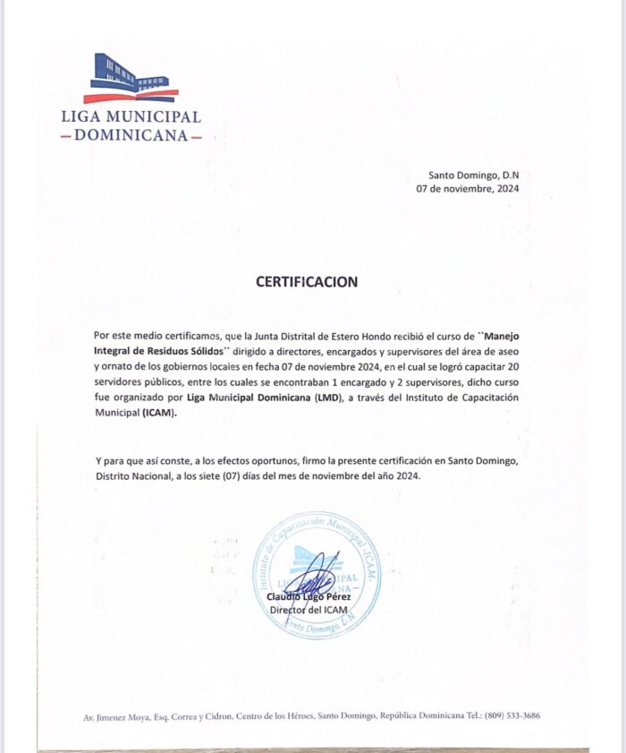 Con este curso, la Junta Distrital de Estero Hondo da un paso significativo en la mejora de sus prácticas ambientales, beneficiando a sus residentes y reforzando el compromiso con la sostenibilidad y el bienestar comunitario.